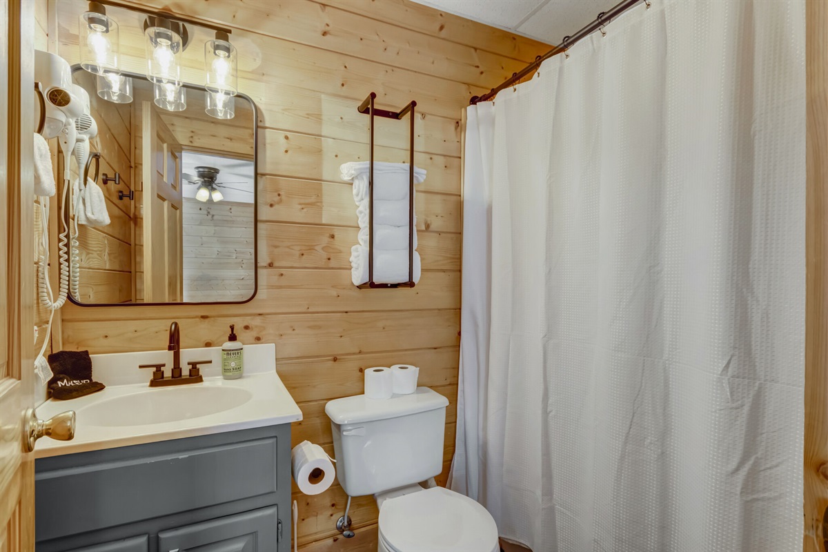 🛏๏ธ Bedroom 5: QUEEN bed, shower + tub, Roku TV